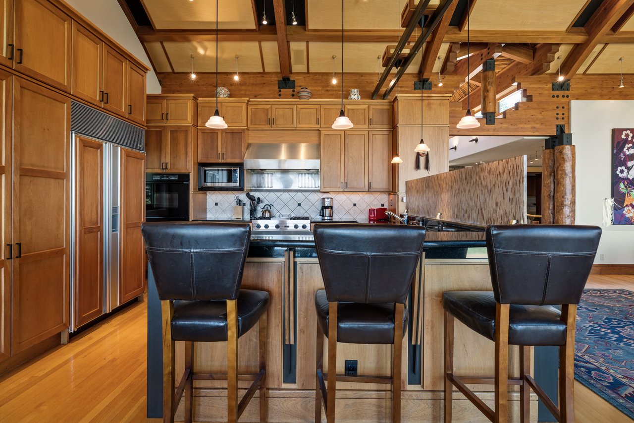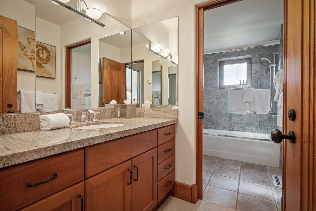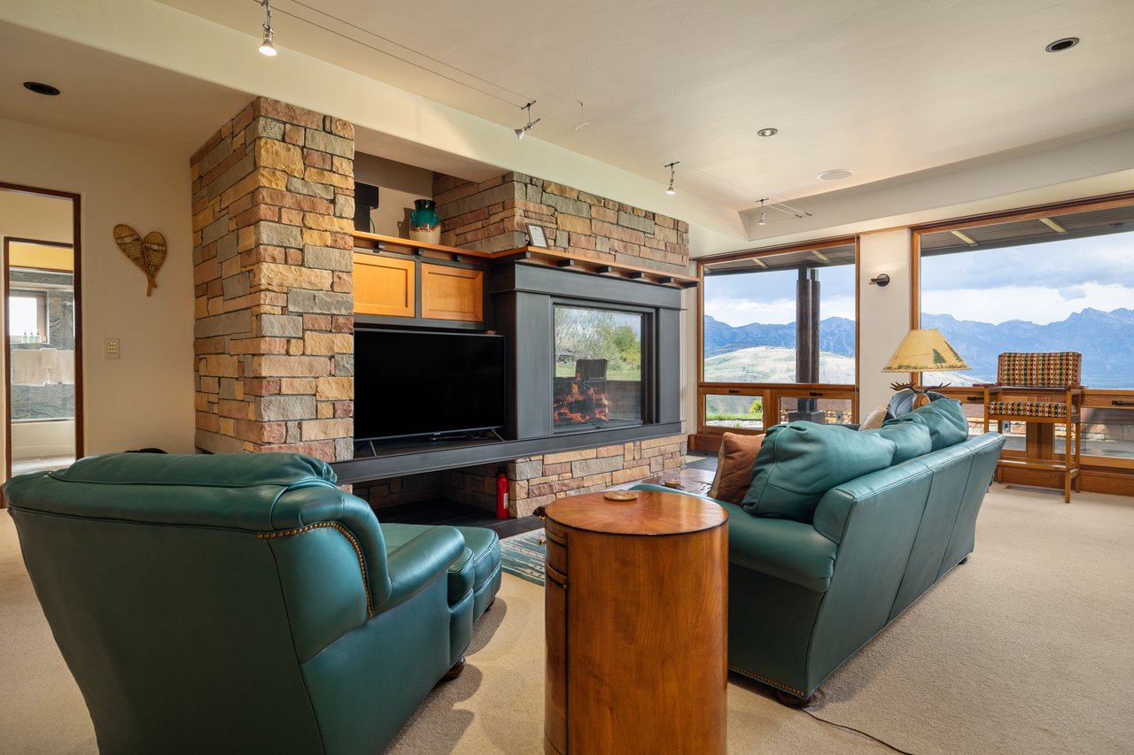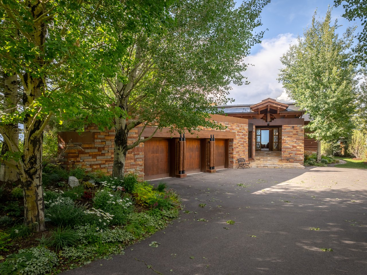 Privately situated along a tree-lined drive, this stunning Midcentury Modern/Western-inspired residence—known as the ''Trout House''—was custom-designed by Ward + Blake Architects to reflect the passions of its original owners. With nearly 5,000 sq ft of living space, the home features a dramatic vaulted great room, custom built-ins, and playful trout-themed design elements throughout. The spacious layout includes four ensuite bedrooms, including a luxurious primary suite accessed via a lighted glass bridge, offering floor-to-ceiling Teton views, a spa-like bath, and a custom walk-in closet.