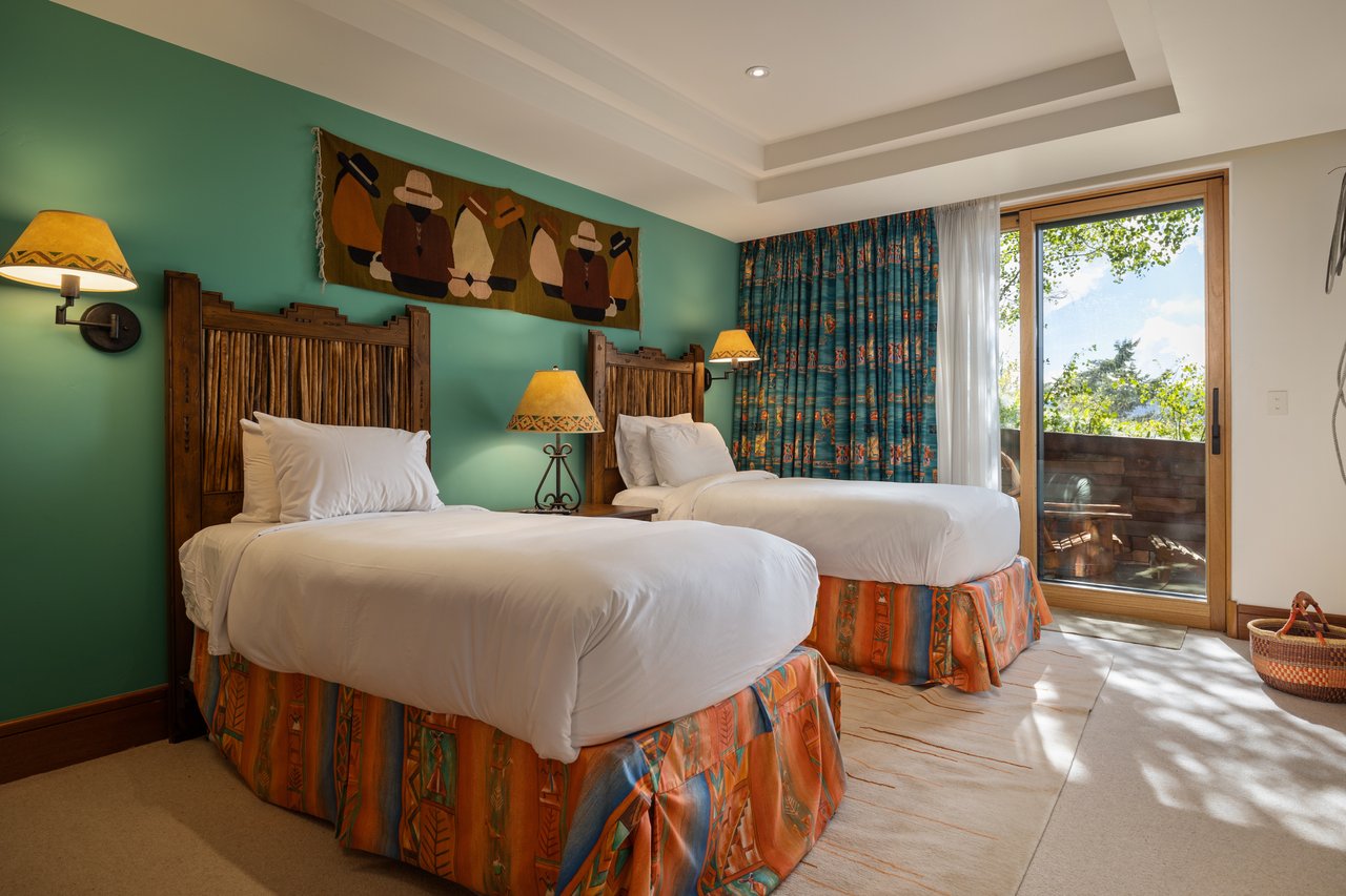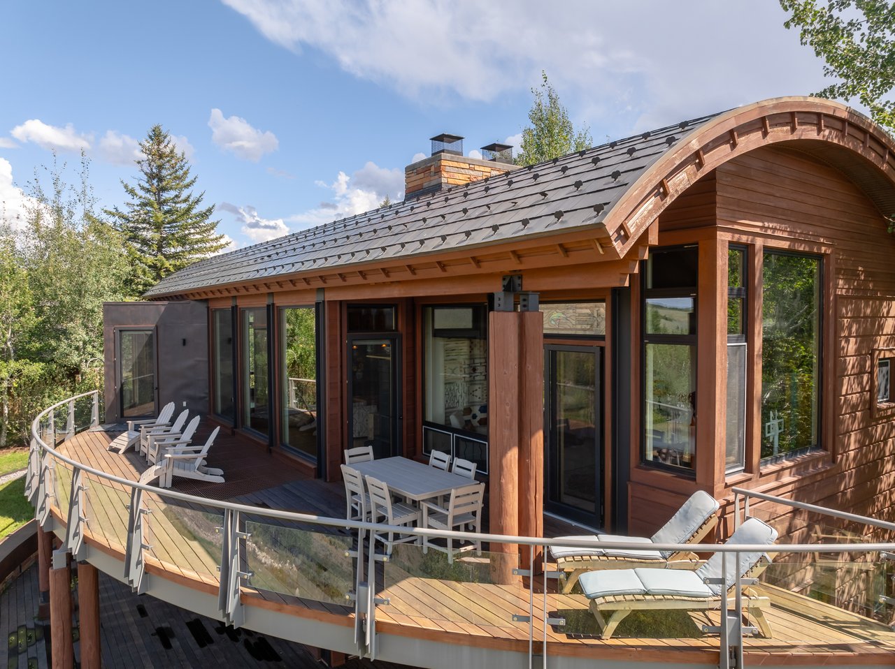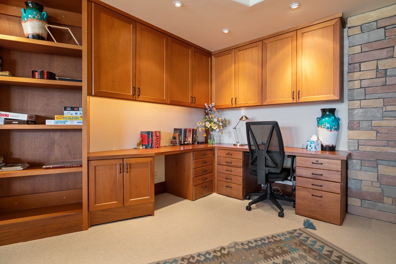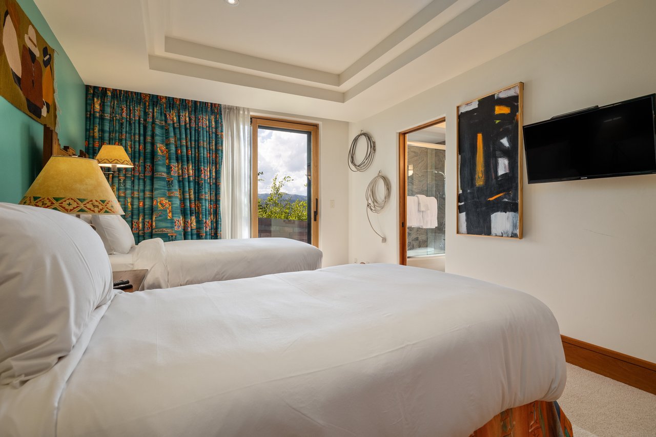 Privately situated along a tree-lined drive, this stunning Midcentury Modern/Western-inspired residence—known as the ''Trout House''—was custom-designed by Ward + Blake Architects to reflect the passions of its original owners. With nearly 5,000 sq ft of living space, the home features a dramatic vaulted great room, custom built-ins, and playful trout-themed design elements throughout. The spacious layout includes four ensuite bedrooms, including a luxurious primary suite accessed via a lighted glass bridge, offering floor-to-ceiling Teton views, a spa-like bath, and a custom walk-in closet.